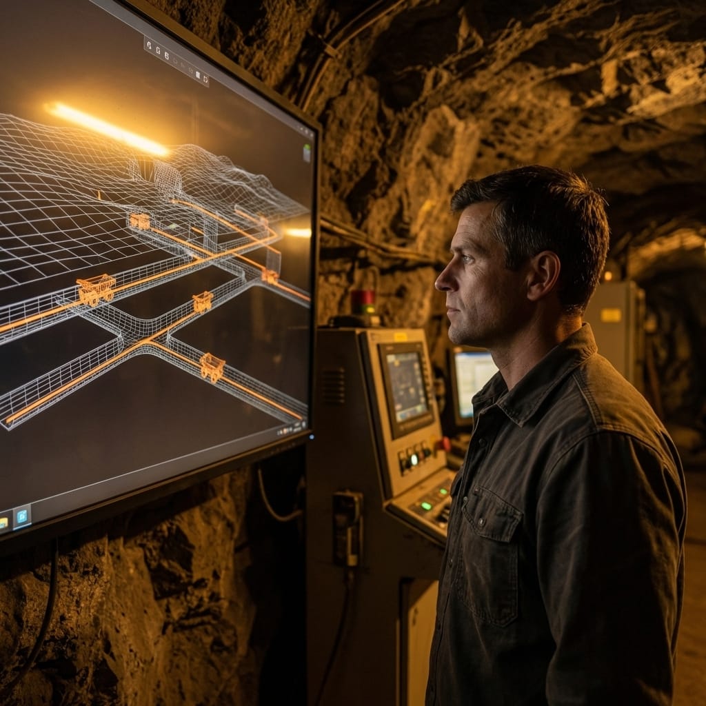 Ridgeline's mines are the reason James Chen can build neuromorphic processors, solid-state batteries, and quantum optics. The rare earth deposits — neodymium, dysprosium, terbium — sit in veins that run through volcanic basalt at angles that make conventional tunnel planning a geometry problem I would not wish on a graduate student. The tunnels are narrow. The ramps between levels pitch at twelve to fifteen degrees. And until six weeks ago, every gram of ore that came out of those tunnels was hauled by a driver sitting in a cab, making judgment calls about traffic in corridors too tight for two trucks to pass.